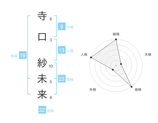 寺口 紗未来さんの総格は32画の5点!