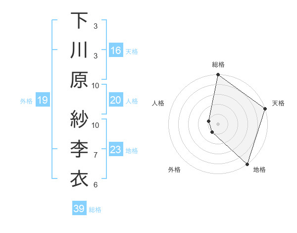 下川原 紗李衣さんを姓名の画数から五運を鑑定