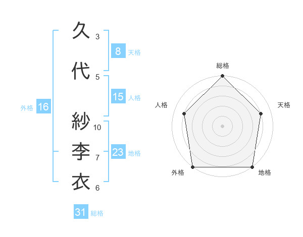 久代 紗李衣さんを姓名の画数から五運を鑑定