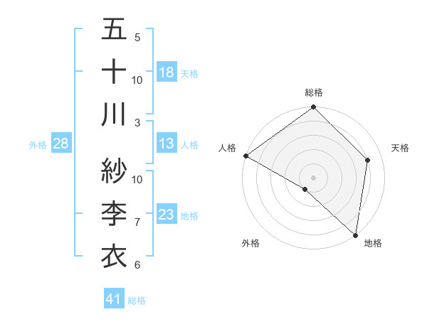 五十川 紗李衣さんを姓名の画数から五運を鑑定