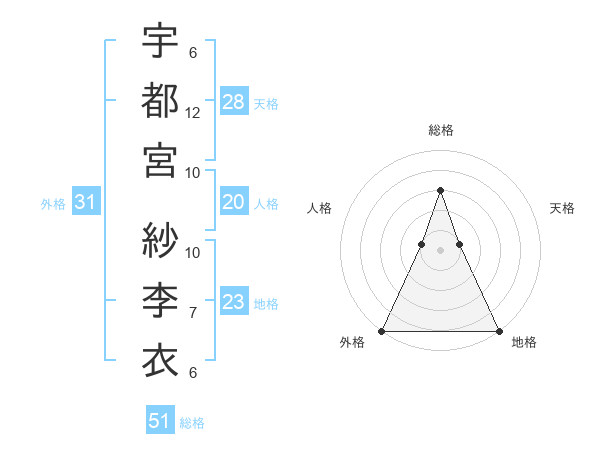 宇都宮 紗李衣さんを姓名の画数から五運を鑑定