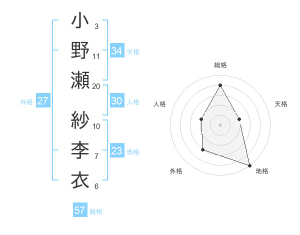 小野瀬 紗李衣さんを姓名の画数から五運を鑑定