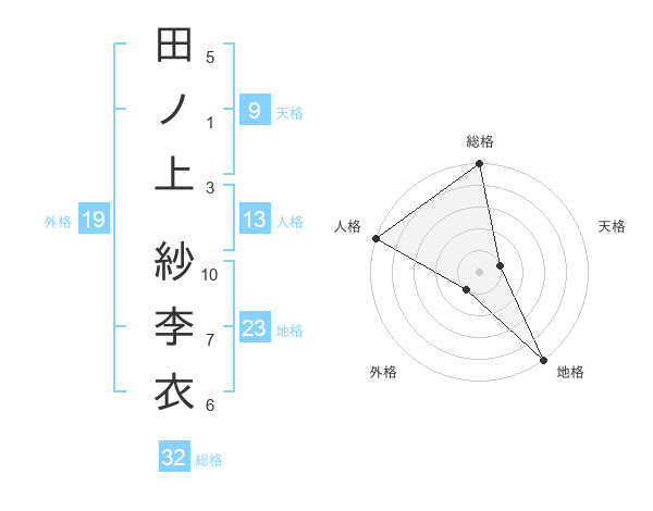 田ノ上 紗李衣さんを姓名の画数から五運を鑑定
