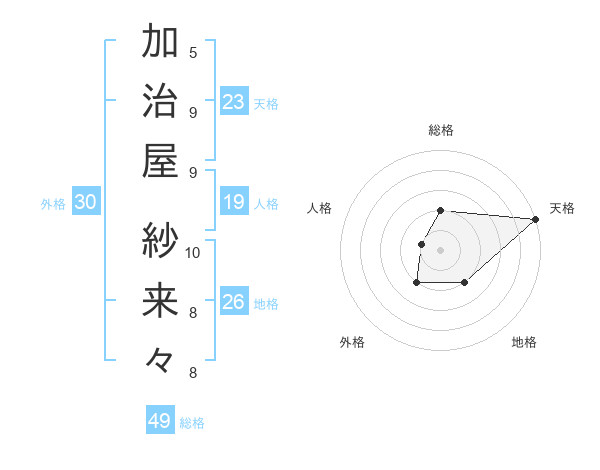 加治屋 紗来々さんを姓名の画数から五運を鑑定