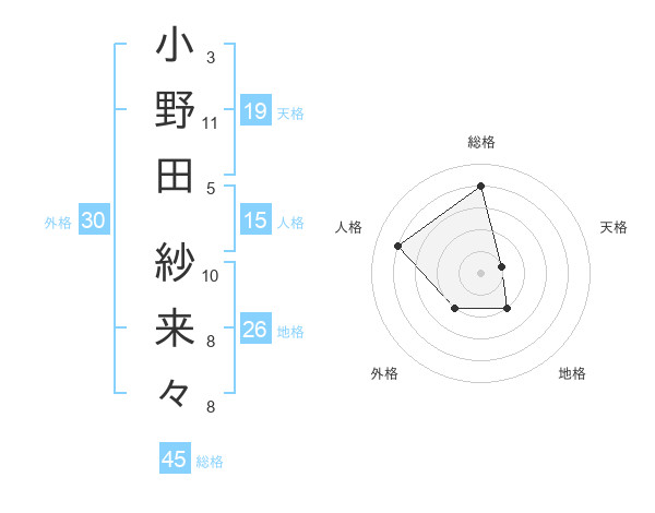 小野田 紗来々さんを姓名の画数から五運を鑑定