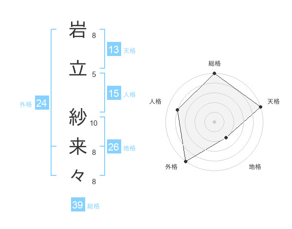 岩立 紗来々さんを姓名の画数から五運を鑑定