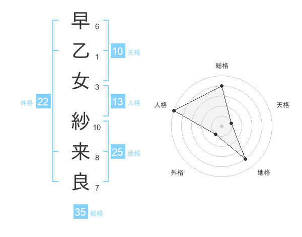 早乙女 紗来良さんの総格は35画の4点!
