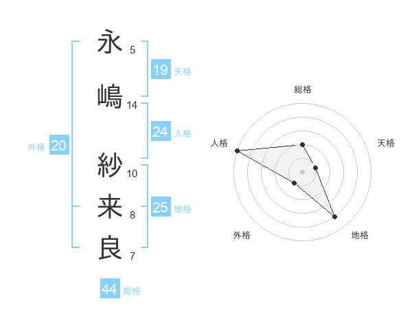 永嶋 紗来良さんを姓名の画数から五運を鑑定