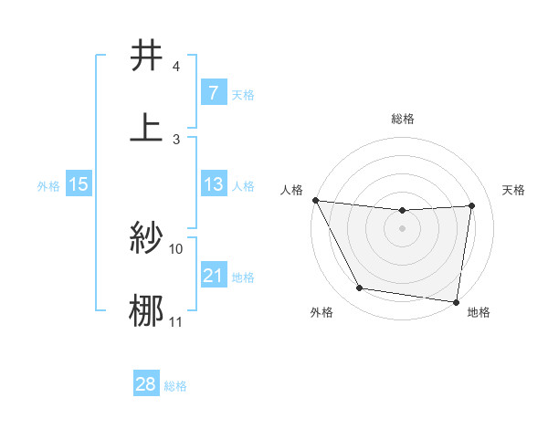井上 紗梛さんを姓名の画数から五運を鑑定