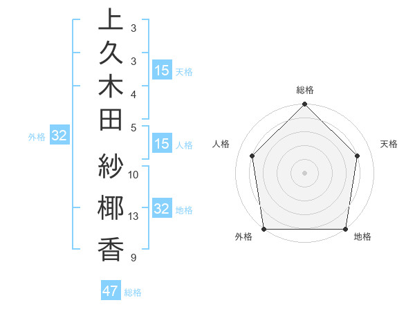 上久木田 紗椰香さんを姓名の画数から五運を鑑定