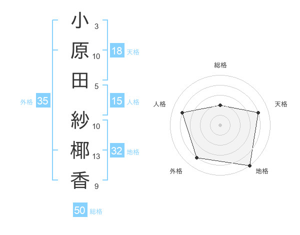 小原田 紗椰香さんを姓名の画数から五運を鑑定