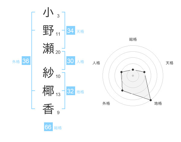 小野瀬 紗椰香さんの地格は32画の5点!