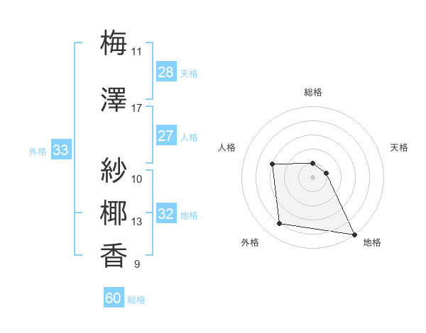 梅澤 紗椰香さんを姓名の画数から五運を鑑定