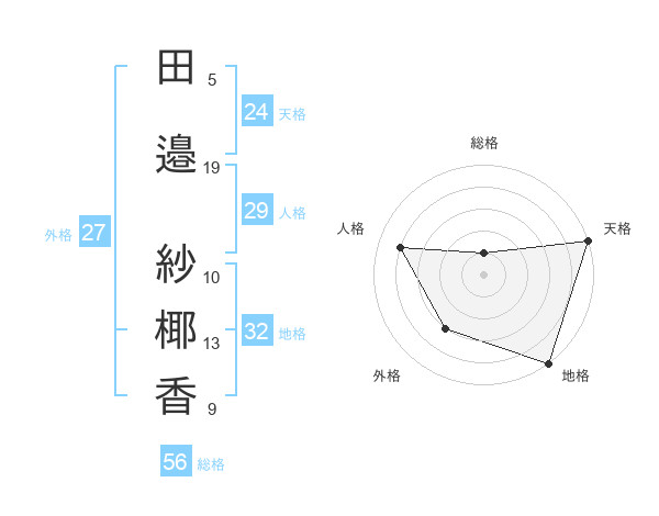 田邉 紗椰香さんの天格は24画の5点!
