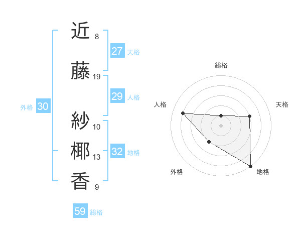 近藤 紗椰香さんの総格は59画の1点!