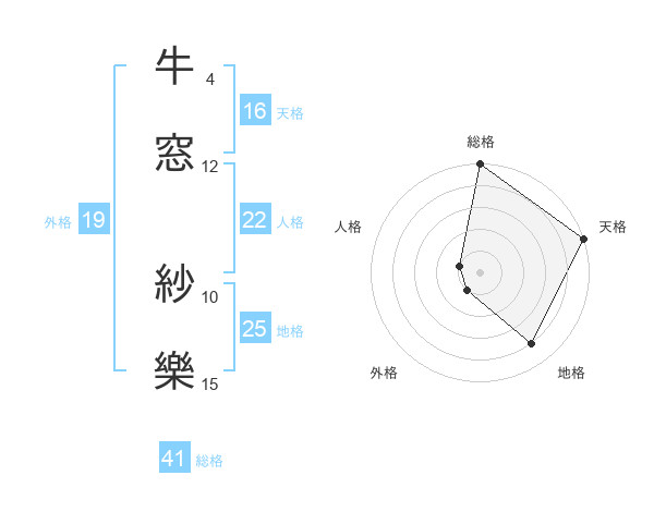 牛窓 紗樂さんの総格は41画の5点!