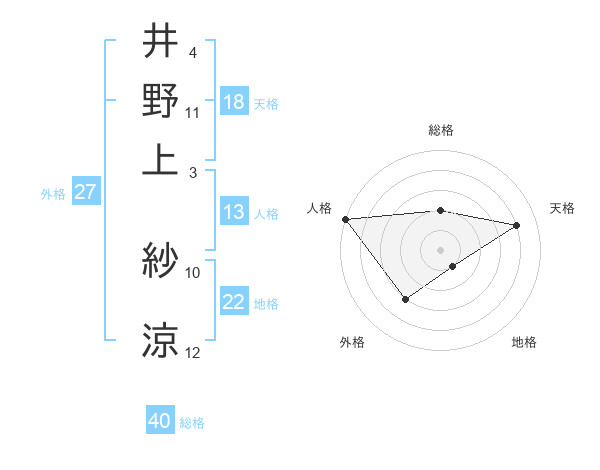 井野上 紗涼さんを姓名の画数から五運を鑑定