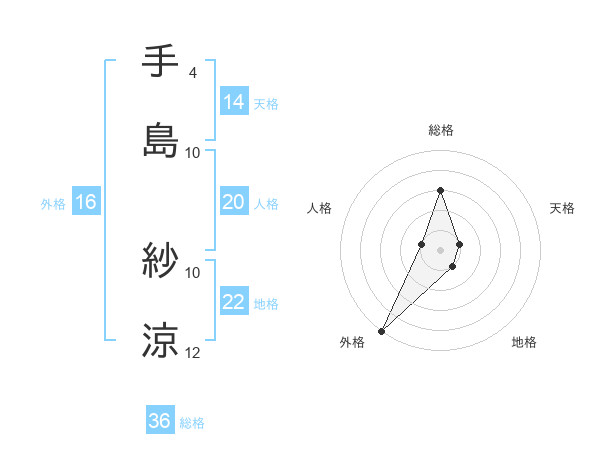 手島 紗涼さんの外格は16画の5点!