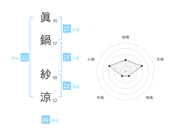 眞鍋 紗涼さんを姓名の画数から五運を鑑定