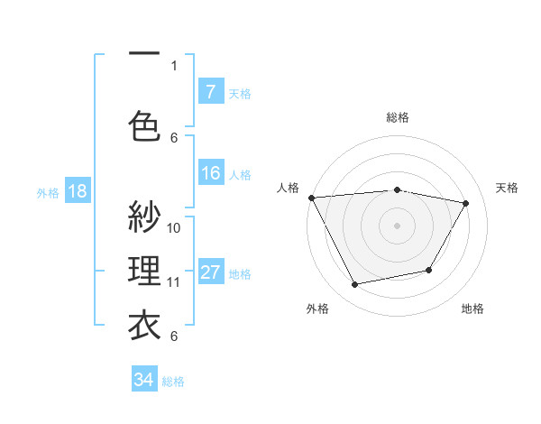 一色 紗理衣さんの総格は34画の2点!