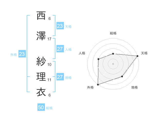 西澤 紗理衣さんの外格は23画の5点!