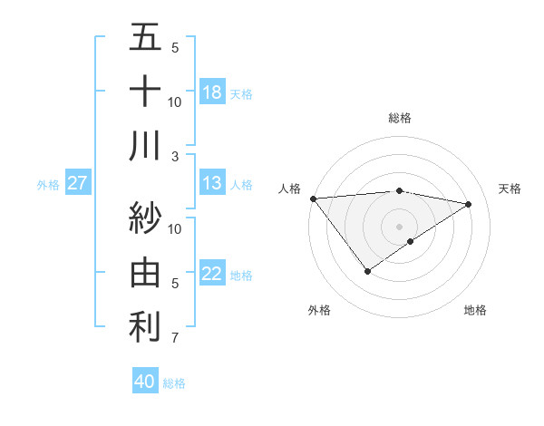 五十川 紗由利さんの天格は18画の4点!