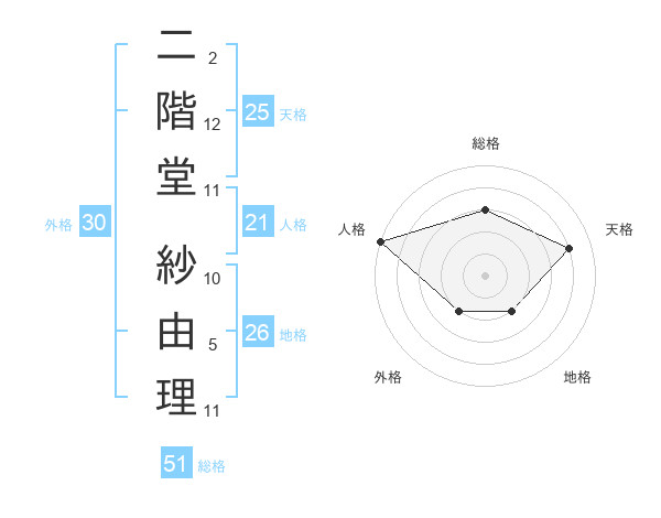 二階堂 紗由理さんを姓名の画数から五運を鑑定