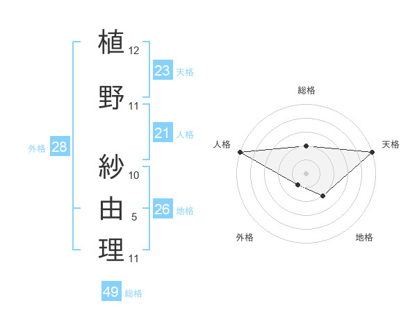 植野 紗由理さんを姓名の画数から五運を鑑定