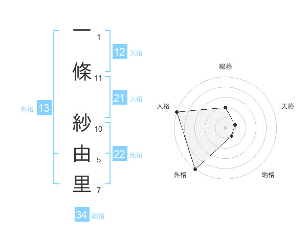 一條 紗由里さんを姓名の画数から五運を鑑定