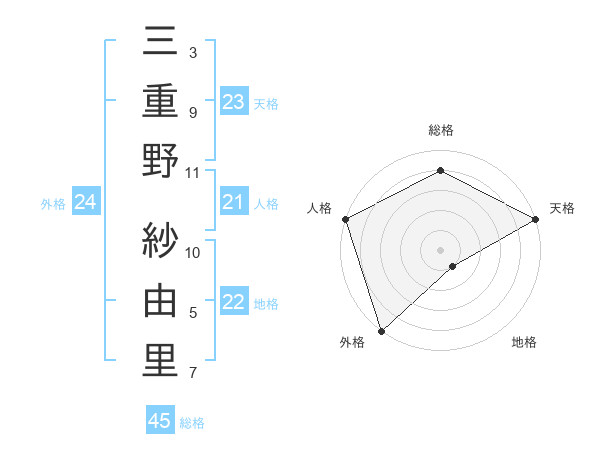 三重野 紗由里さんを姓名の画数から五運を鑑定