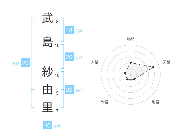 武島 紗由里さんを姓名の画数から五運を鑑定