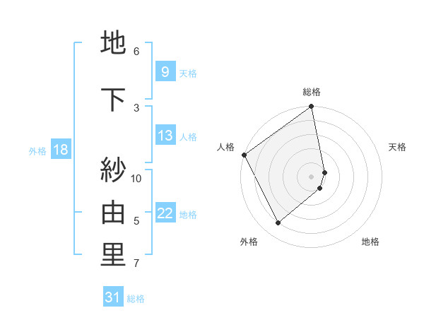 地下 紗由里さんの総格は31画の5点!