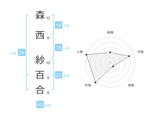 森西 紗百合さんを姓名の画数から五運を鑑定