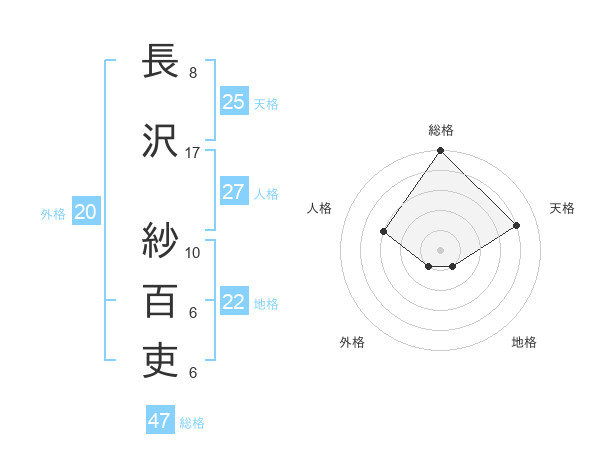 長沢 紗百吏さんを姓名の画数から五運を鑑定