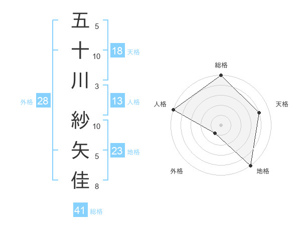 五十川 紗矢佳さんを姓名の画数から五運を鑑定