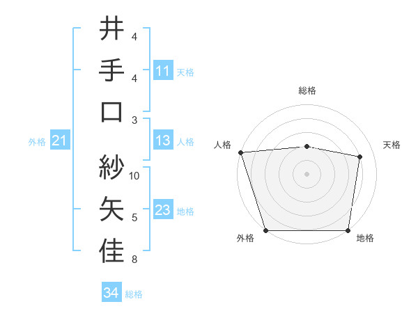 井手口 紗矢佳さんを姓名の画数から五運を鑑定
