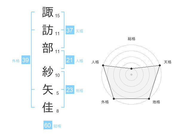 諏訪部 紗矢佳さんの総格は60画の1点!