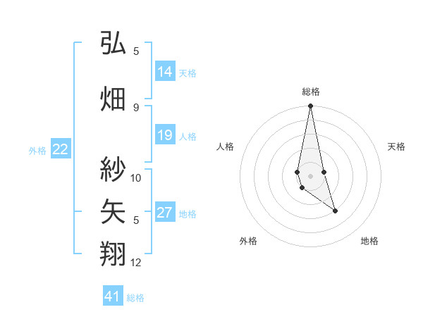 弘畑 紗矢翔さんを姓名の画数から五運を鑑定