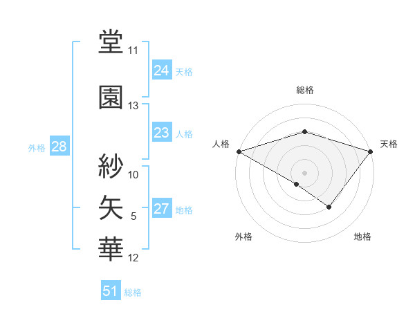 堂園 紗矢華さんを姓名の画数から五運を鑑定