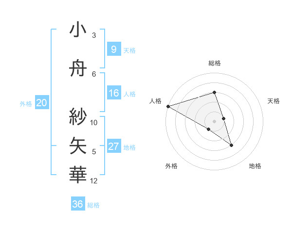 小舟 紗矢華さんを姓名の画数から五運を鑑定