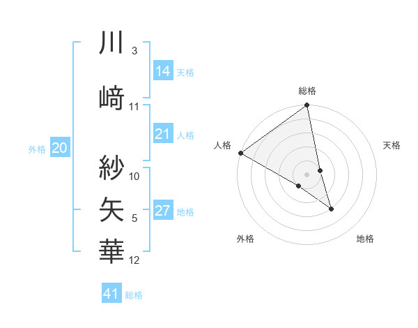 川﨑 紗矢華さんの総格は41画の5点!