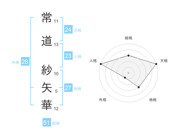 常道 紗矢華さんを姓名の画数から五運を鑑定
