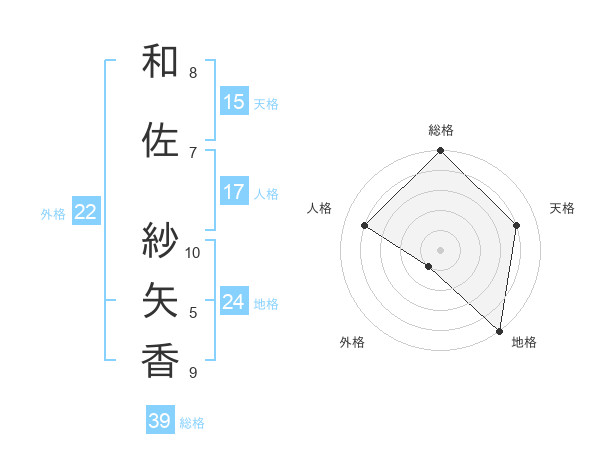 和佐 紗矢香さんを姓名の画数から五運を鑑定