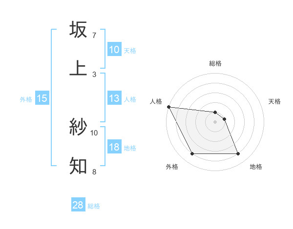 坂上 紗知さんの総格は28画の1点!