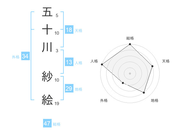 五十川 紗絵さんを姓名の画数から五運を鑑定