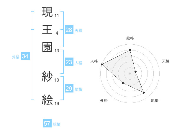 現王園 紗絵さんの総格は57画の4点!