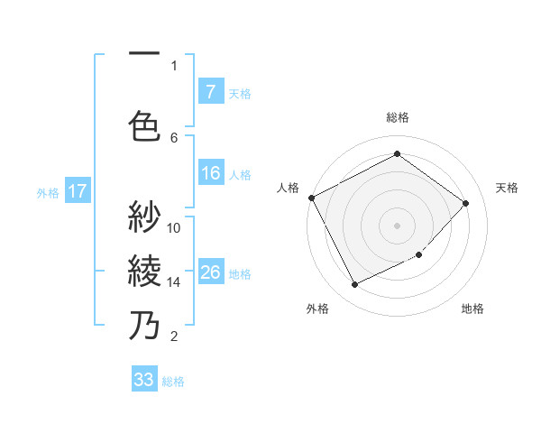 一色 紗綾乃さんを姓名の画数から五運を鑑定