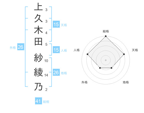 上久木田 紗綾乃さんを姓名の画数から五運を鑑定