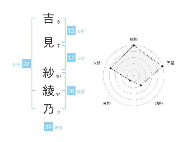 吉見 紗綾乃さんの天格は13画の5点!