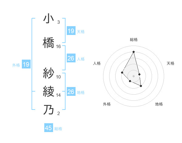 小橋 紗綾乃さんを姓名の画数から五運を鑑定